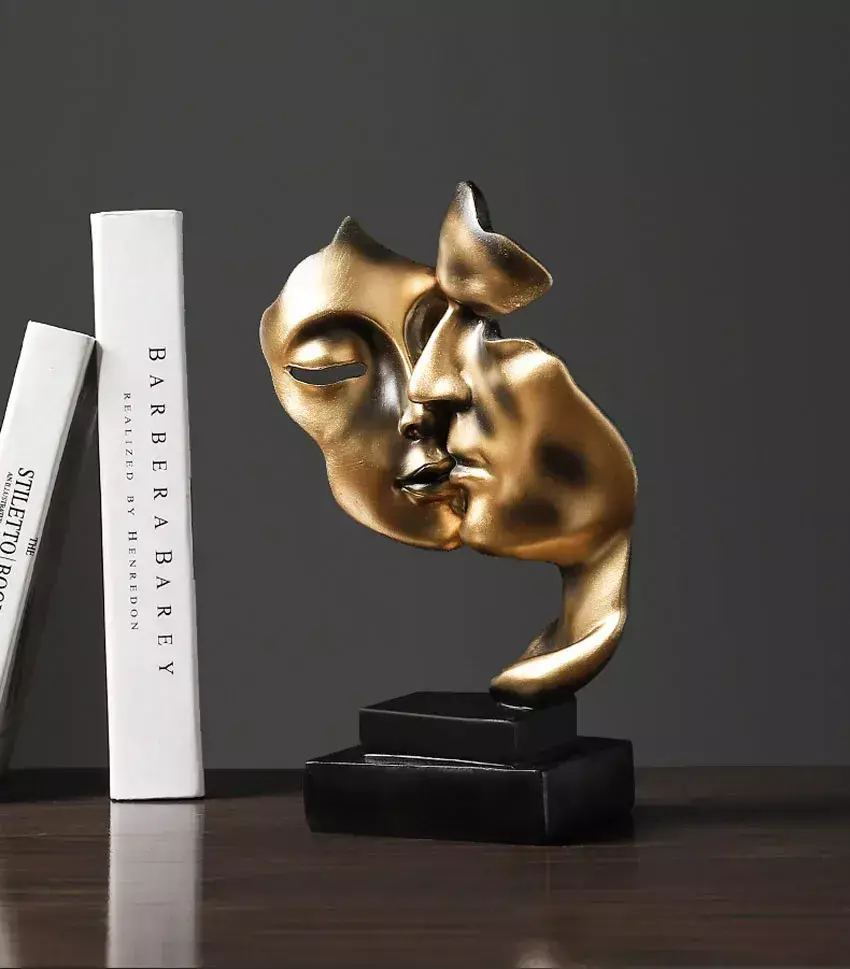 Com um design europeu contemporâneo, essa escultura em formato de máscara de beijo é o equilíbrio perfeito entre arte moderna e emoção atemporal.